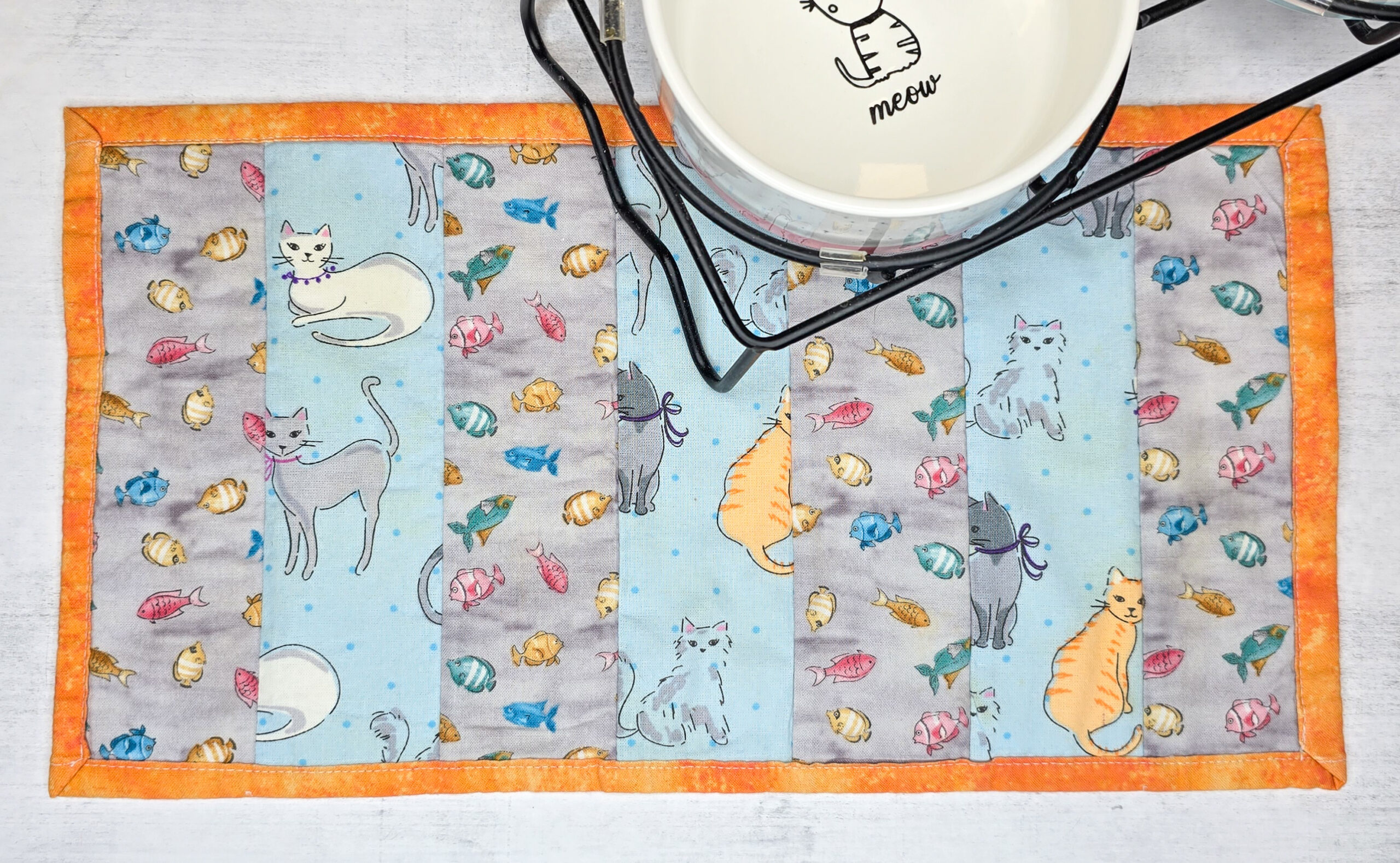 Sew a DIY cat bowl mat in just 20 minutes! 🐾 This fast & easy sewing project is perfect for beginners and a great way to use fabric scraps. Make a quilted kitty placemat that keeps your pet’s feeding area clean and cute.